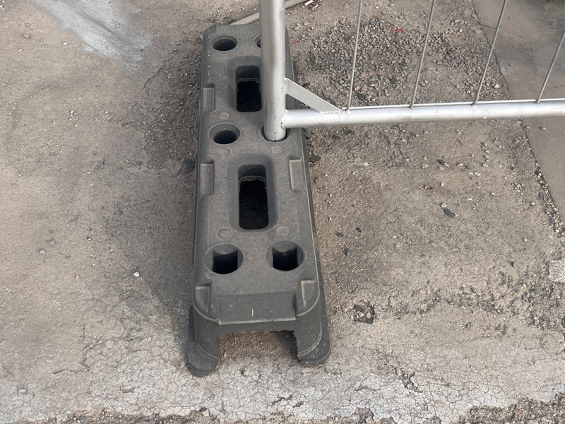 La base de plástico de la barandilla temporal tiene una estructura robusta y un peso y tamaño razonables.